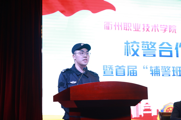 徐须实致辞。他说,开展校警合作培养组建辅警班,是实现校警双方资源优势互补,共同培养高素质的有实战能力、有专业技能的辅警人才,为保一方平安提供警力支持的创新举措,也是学校拓宽合作领域,提升服务地方能力水平的有益探索。首届辅警班是校警双方正式签约以来的第一个实施项目,他要求要将首届辅警班办好,将两个共建基地做实,将双方合作领域拓宽,以需求为导向、以共赢为原则,互相出题、互相答题,从人才培养、科技研发和社会服务等方面,不断拓展合作领域,不断探索合作新模式,在合作交流中实现双方的高水平发展,一起为“活力新衢州、美丽大花园”建设作出更大的贡献!