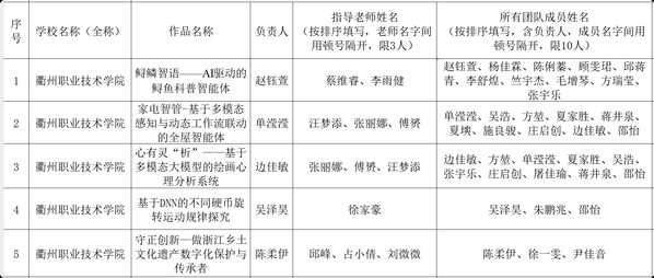 浙江省第十九届“挑战杯”大学生课外学术科技作品竞赛“人工智能+”专项赛拟推荐国赛作品公示